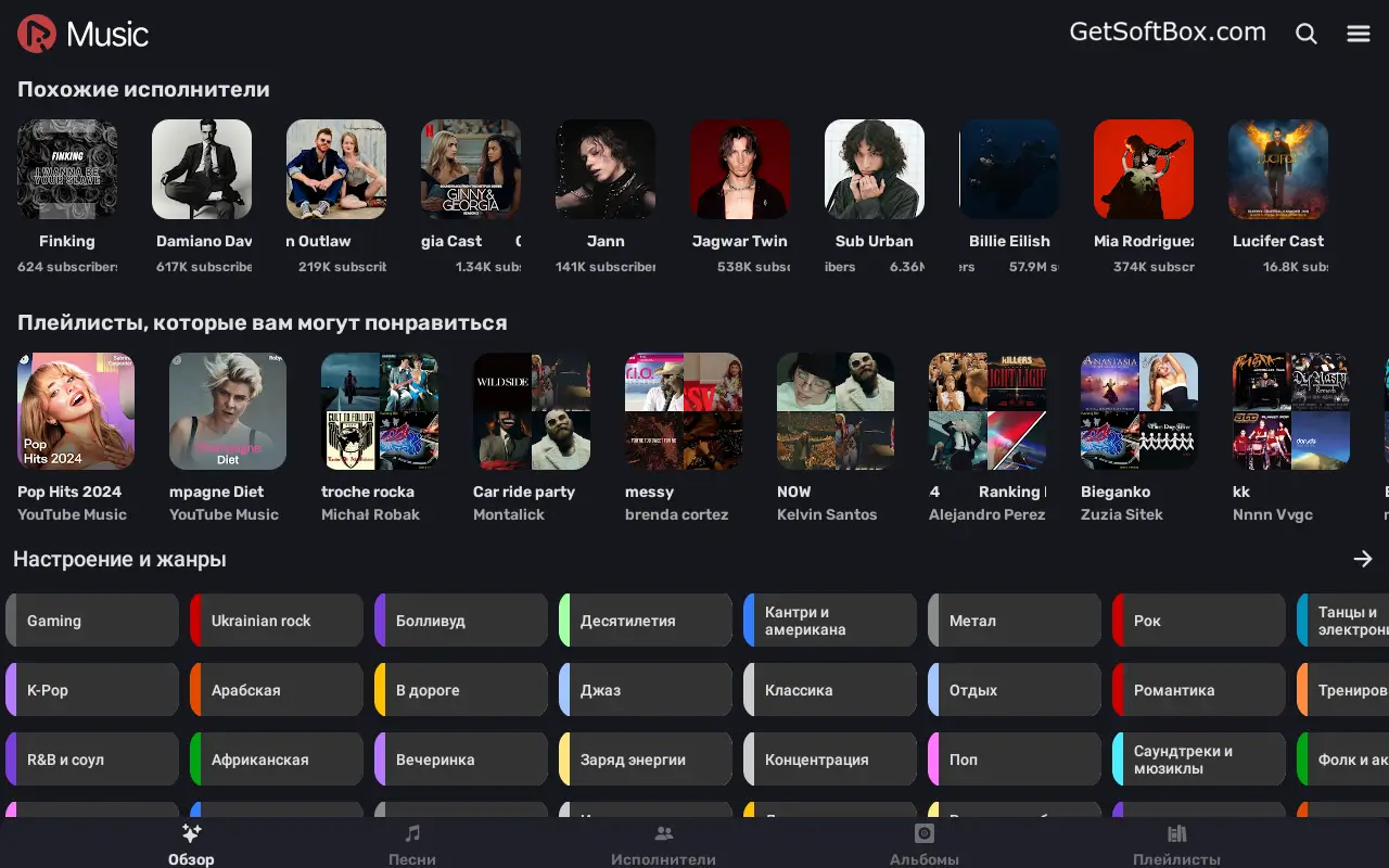 - Персонализированная лента: следите за любимыми артистами, получайте рекомендации и статистику прослушиваний.